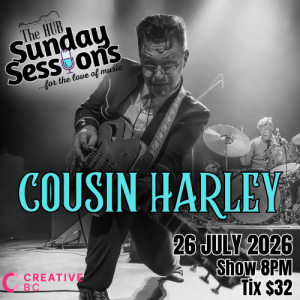 Hailing from Vancouver, British Columbia, Cousin Harley is a high-octane trio that fuses hot-rod rockabilly with Western swing, blues, and flashes of bebop jazz. Anchored by guitarist, songwriter, and bandleader Paul Pigat, the band delivers a sound that can explode like an active volcano, swing with big-band precision, and holler with the raw spirit of backwoods Americana—all within a single set. For over 20 years, Cousin Harley has been thrilling audiences around the world with a pedal-to-the-metal approach to roots music that is anything but simple.