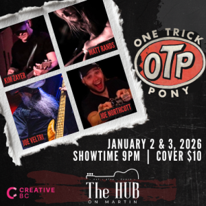 January 2, 2026 9:00 pm - January 4, 2026 1:00 am The Hub on Martin, Penticton B.C.